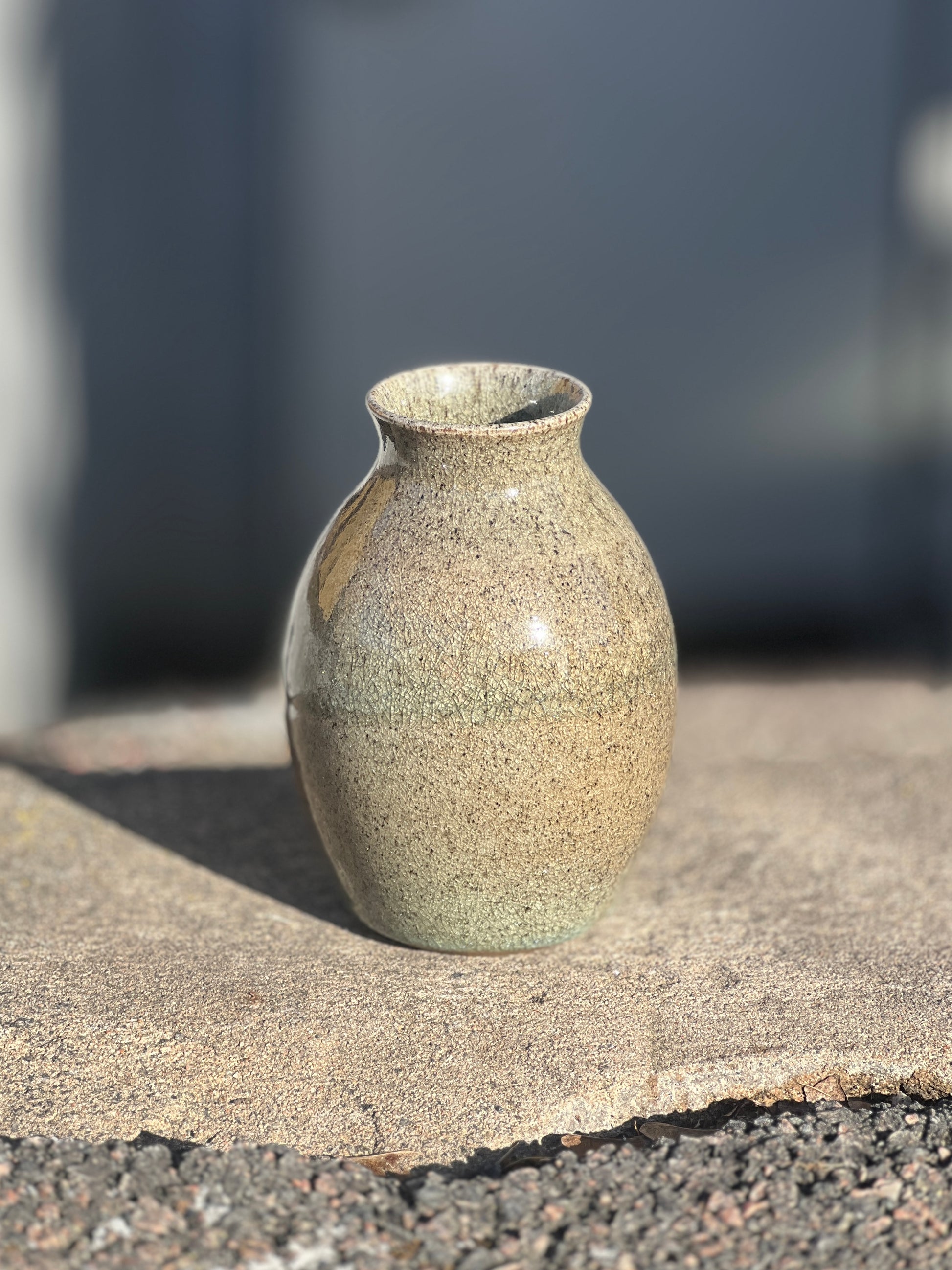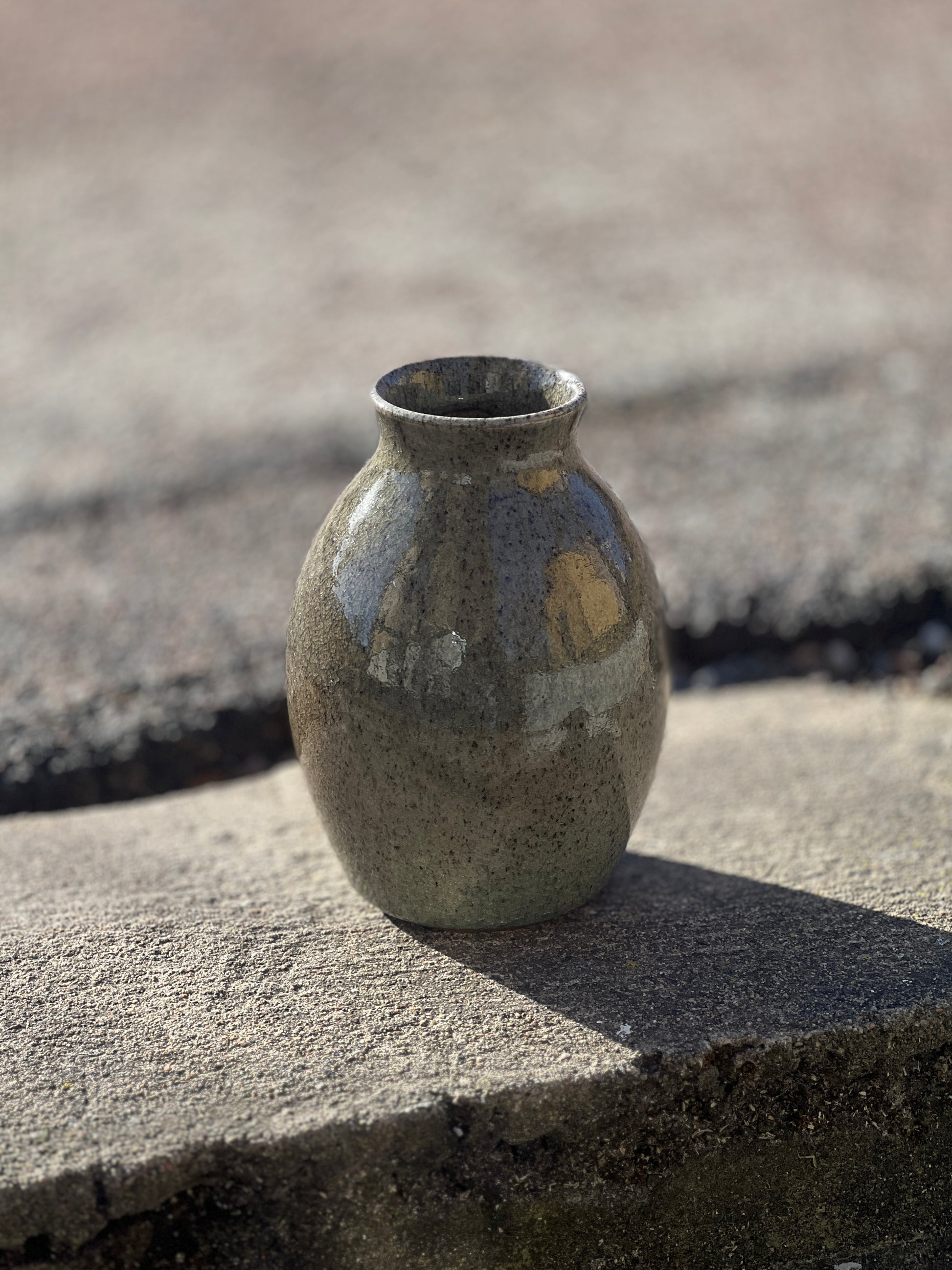 Vasen är drejad i en grå stengodslera och bränd i en vedeldad keramikugn.